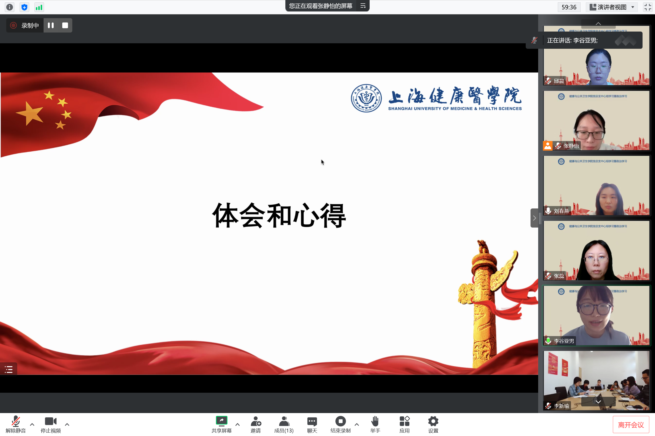 党员同志随后发表了心得体会。李谷亚男同志表示通过学习,体会到习近平新时代中国特色社会主义思想承载着中国共产党人的初心和使命。将运用习近平新时代中国特色社会主义思想蕴藏的马克思主义立场观点方法,明确任务、指导实践,为教学评估及其他本职工作努力奋斗。赵乐宏同志表示习近平新时代中国特色社会主义思想,立意高远、博大精深、内涵丰富,是新时代引领全党接续前行的思想旗帜,是实现中华民族伟大复兴的行动指南。经过学习,增强了对习近平新时代中国特色社会主义思想的政治认同、思想认同、理论认同和情感认同,更加坚定了信仰。要坚定用党的创新理论做好员工工作,带领员工共同提高政治站位,提高思想认识。在新时代新征程上团结一心、勇毅前行。