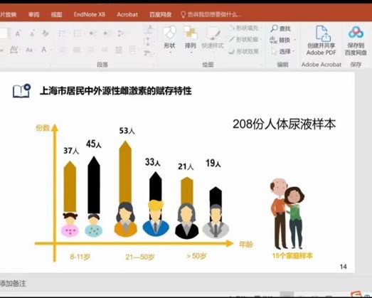 王老师重点介绍了应用物种敏感度曲线进行生态评估,指出86%的样品中污染物的浓度超过了慢性毒性的基准值,有必要对上海市环境介质中的外源性雌激素进行长期监测。体外实验发现连续联合染毒对乳腺癌细胞增殖效率较大,表示,外源性雌激素在乳腺癌细胞系增殖过程中发挥了重要作用。