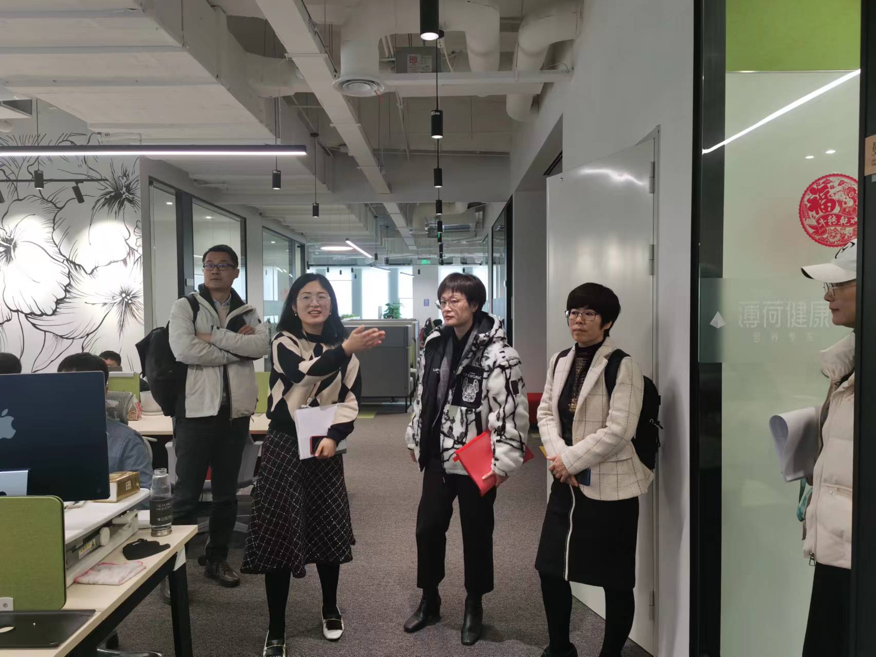 薄荷健康十分重视此次公司到访,公司胥总对公司来访热烈欢迎,介绍了公司发展、业务和用人等相关情况,期待与公司在产教融合、人才培养等方面加强合作。顾书记和那经理介绍了公司建设、教学科研、员工培养和社会服务等相关情况,阐述了期待与新型高科技企业共同合作的想法与思路。接着双方就校企合作、员工实习、课程共建、创新创业等具体事项进行了深入研讨,达成了共识,明确了具体合作事项和实施步骤。随后在公司人员陪同下,公司教师参观了公司相关业务和员工工作环境。