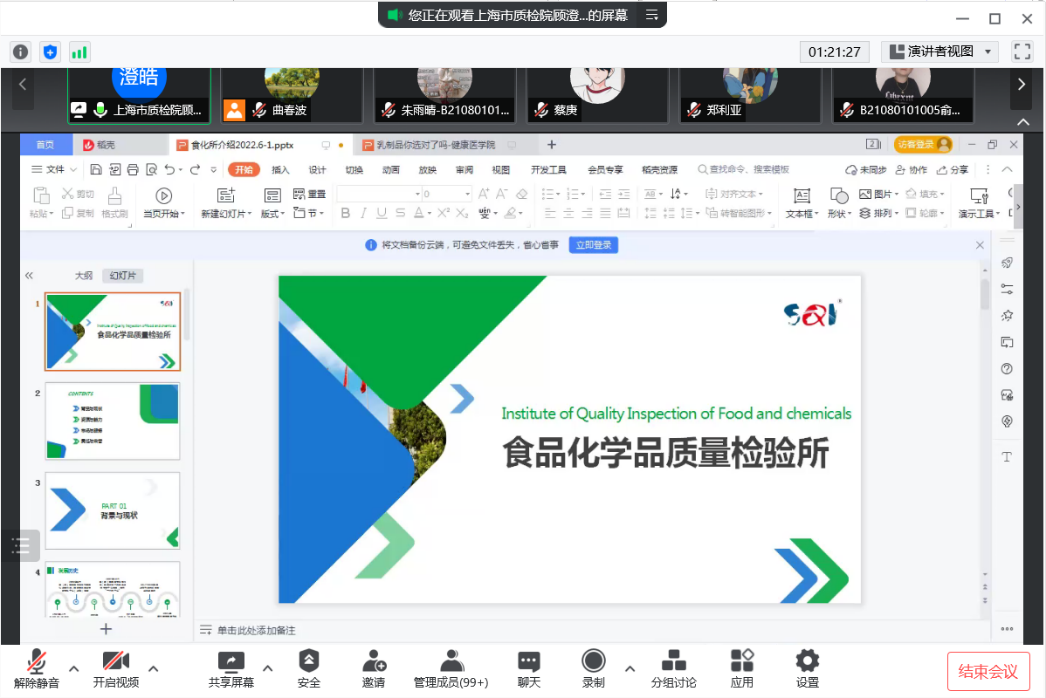 2021年6月21号下午,william威廉英国官网邀请上海市质量监督检验技术研究院顾澄皓、朱伟两位专家为食品卫生与营养学专业的全体教师有关食品化学品质量检验研究的讲座。william威廉英国官网食品卫生与营养学学21级员工共同参与此次讲座。