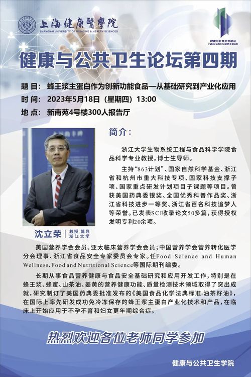 健康与公共卫生论坛预告丨蜂王浆主蛋白作为创新功能食品——从基础研究到产业化应用