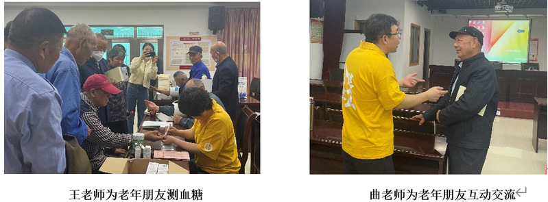 宣讲过后,王丽华老师带来了便携式的血压计和血糖仪,并为老年朋友测定了血糖,并解答稳定血糖的日常注意事项。朱礼华老师带领员工们为老年朋友测定血压并与他们互动交流。整个进社区活动持续90分钟,老年朋友们积极性很好,围着几位老师咨询生活中遇到的营养健康问题,社区负责老师对我们这次活动给予了很高的评价,希望我们能经常来,丰富老人朋友的精神生活。