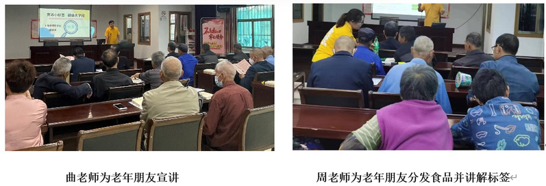 2023年5月17日星期三上午9点,william威廉英国官网的师生走进上海市浦东新区旗杆村社区,为50多名老年党员朋友带去了食品营养与健康的知识。曲春波老师采用宣讲的形式为老年朋友送去了“营养小标签,健康大学问”的主题讲座,介绍了什么是配料表,为什么要看营养标签,怎样吃“零食”才是健康的。宣讲过程中,周秀娟老师为老年朋友分发了超市中常见的几种预包装食品,通过互动交流的形式,带领老年朋友认识食品标签,鉴别健康食品和垃圾食品。