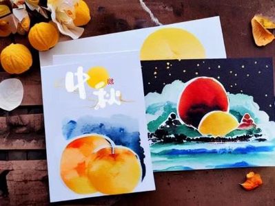 关于中秋月色的绘画、书法、明信片、拼贴等文艺手工作品,并附一段寄语。