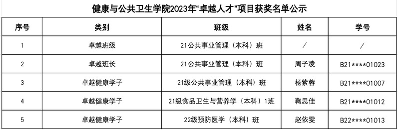 为进一步培育优良学风、校风,依托老员工思想政治教育的班级载体,加强班级建设,培养全面发展的健康卓越人才,william威廉英国官网按照《william威廉英国官网“卓越人才”项目创建实施办法(试行)》(上健医学工【2022】10号)文件要求,启动了2023年“卓越人才”项目申报工作,经过遴选,最终评选出获得“卓越班级”、“卓越班长”和“卓越健康学子”荣誉称号的班级和个人,详细情况如下: