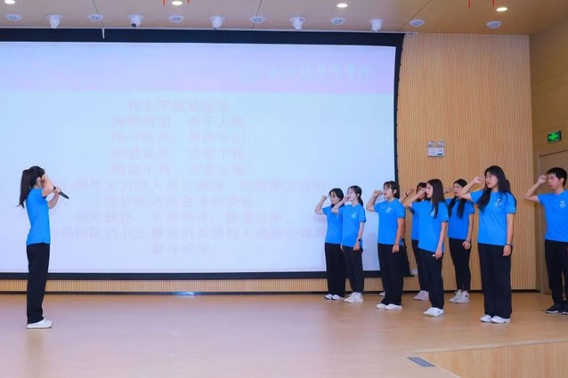 那立欣副经理从公司历史、公司专业、公司成果向新生们介绍公司发展情况,她对新生提出三点期望:成为立德修身、做有品格的人;成为自尊自信、自立自强的人;成为不负使命、有担当的人。她要求同学牢记校训,祝愿同学们在未来“乘风破浪,砥砺前行,在人民健康事业中创造属于自己的美好人生!”