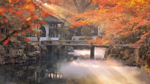 金秋,我踏上前往苏州的寻秋之旅。拙政园的清晨,香气扑鼻,蝉鸟语,仿佛进入了一个世外桃源。我漫步在曲径通幽的小路上,目之所及,皆是翠竹掩映的湖水和火红的枫叶。遥望远处的山水联袂,宛如一幅精美的山水画,这一切给了我无限宁静和美的享受。秋天是个很会取舍的季节,落下颓败的枯叶才会结出丰收的果实。正如我们的校园生活,要果决地舍去颓唐之气,才会结出勤劳甜蜜的果实。