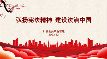 近日,21级公共事业管理(本科)全体团员青年在团支书和辅导员赵乐宏老师的带领指导下,开展了以“弘扬宪法精神,建设法治中国”为主题的团日活动,加深团员青年们对党的二十大精神的理解,促进法治宣传教育,弘扬宪法精神,树立法治意识,增强法治观念。