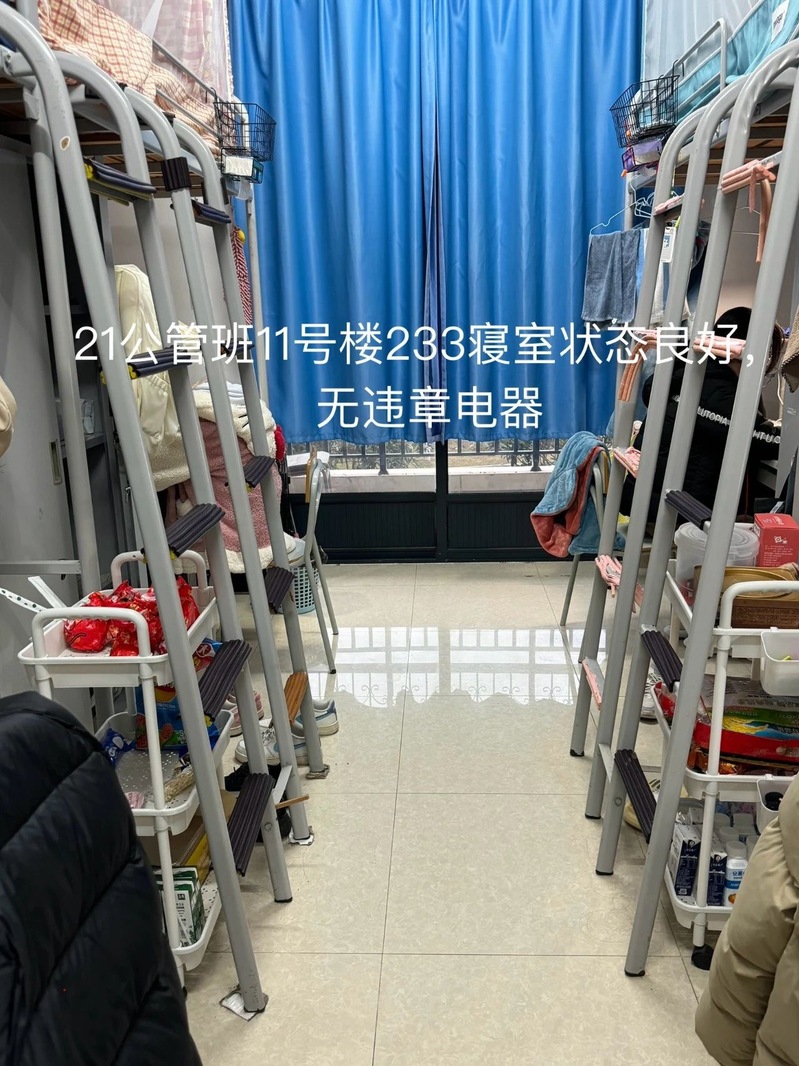 新学期,公司开展生活委员每周一寝室自查活动,安排各生活委员在班内与各寝室长进行对接,各宿舍长轮流完成班内查寝,排除寝室安全隐患,提醒同学们要提高安全意识,对用电防火安全隐患要严防死守,严禁使用违禁电器,保持健康的生活方式。同时,也鼓励同学们养成良好的学习生活习惯。