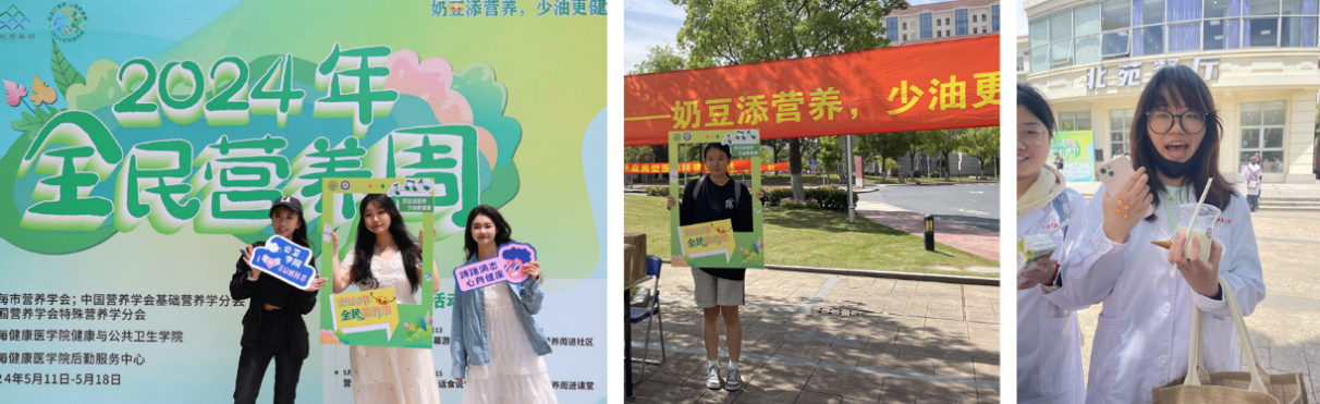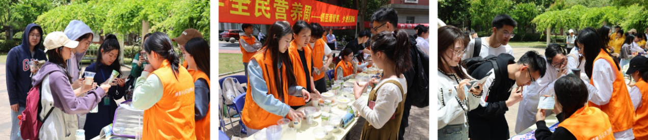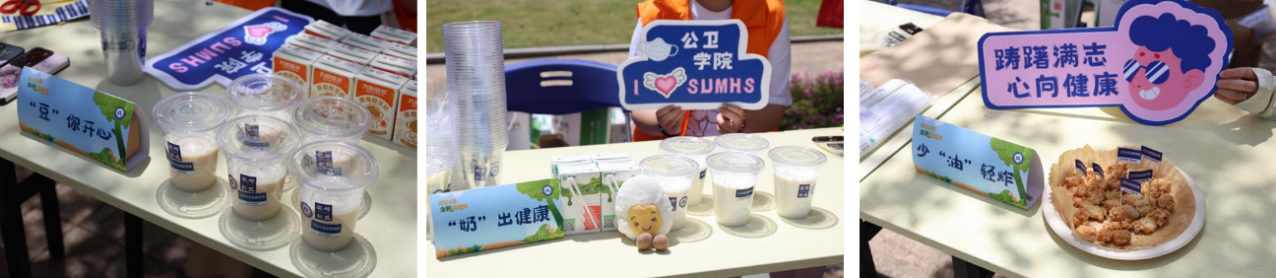食有乾坤·营养社精心准备还在活动现场设置了一个丰富多彩的游园会,“豆”你开心—“奶”出健康—少“油”轻炸——冰淇淋乐园,每一个展厅都围满了小伙伴们,在食品营养老师的指导和讲解下,同学们体会了美食制作的乐趣,满足了渴望健康的味蕾,还深刻认识到了食物的天然营养价值。