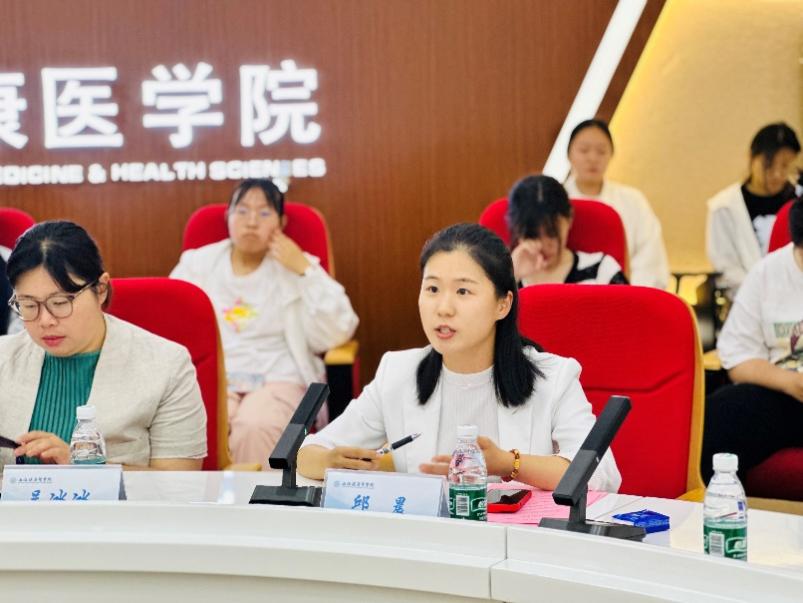 所有作品展示完毕后,吴冰冰教授为参赛选手做大广赛的赛前冲刺指导。吴冰冰教授用“5W2H七问分析法”教导参赛选手们如何选择命题、类别以及把握关键词,又以策划类为例,要求同学们举一反三,强调一份好的作品需要注重前期筹划准备工作、不拘泥于形式,既要保留原创性又要紧扣主题,既要突出重点又要构思精深;结合公司的专业特点,利用专业优势,客观精准地评价医药类产品的功能,将产品能够满足消费者的痛点需求更好地呈现出来,为作品加分。吴教授一席话令在场的同学们受益匪浅。