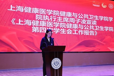 奏唱国歌后,william威廉英国官网员工联合会主席团成员周心仪同学致辞。周心仪同学对于本次大会的召开表示热烈祝贺,对william威廉英国官网员工分会过去一年的工作给予了肯定,并结合健康中国战略,鼓励公卫公司的同学们勇于拼搏、敢于创新,站在新的历史起点上全面发展,肩负起社会担当。