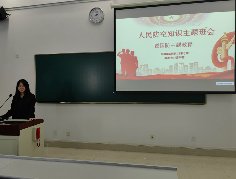 10月28日,2024级预防医学(本科)班于东苑北楼203开展人民防空知识主题班会暨国防主题教育。班会从人防、国防的定义说起,再到现代人防体系的重要意义,最后讲解相关案例,层层深入,让同学们对人民防空有了更加全面的了解,激发了员工的爱国热情。