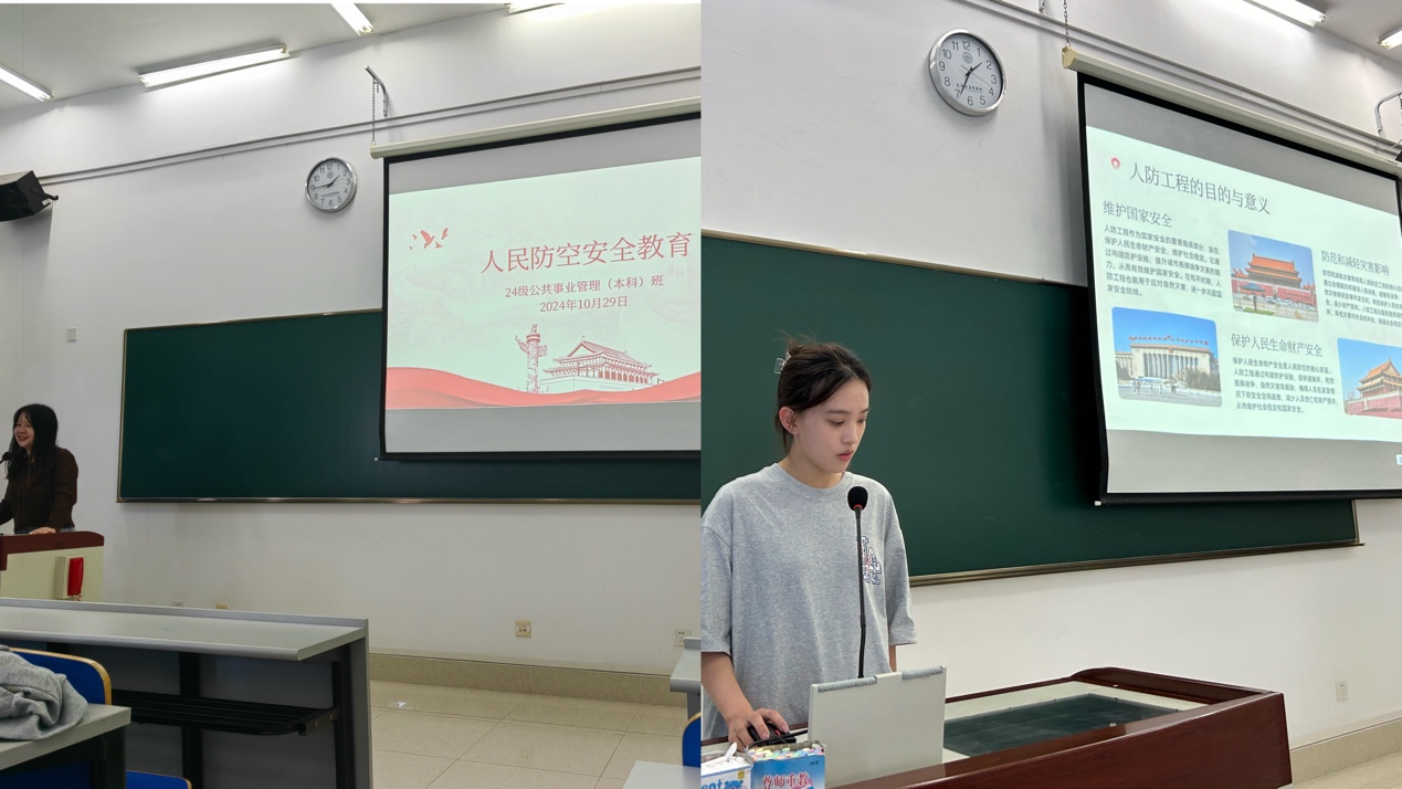 10月28日,2024级预防医学(本科)班于东苑北楼203开展人民防空知识主题班会暨国防主题教育。班会从人防、国防的定义说起,再到现代人防体系的重要意义,最后讲解相关案例,层层深入,让同学们对人民防空有了更加全面的了解,激发了员工的爱国热情。