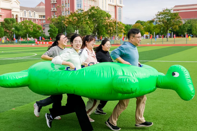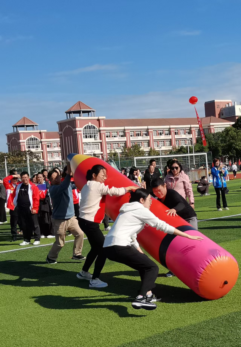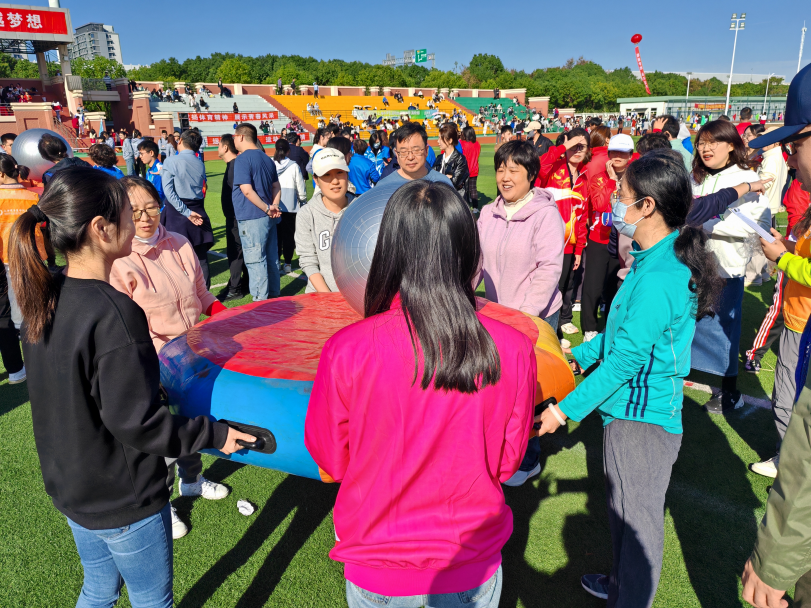在趣味项目竞赛场地上,公卫教工们精神饱满,奋力拼搏。快乐颠球项目里,教工们配合默契、整齐划一的颠球节奏让人不禁鼓掌喝彩!快乐大铅笔项目上,教工们努力保持“铅笔”平衡,劲往一处使,一步一步迈向终点,每一步行动都展现出技巧与力量的完美交融!龟兔赛跑比赛上,老师们碰撞着智慧与默契的火花,携手并进,奋力冲刺,现场加油声、欢呼声响成一片。
