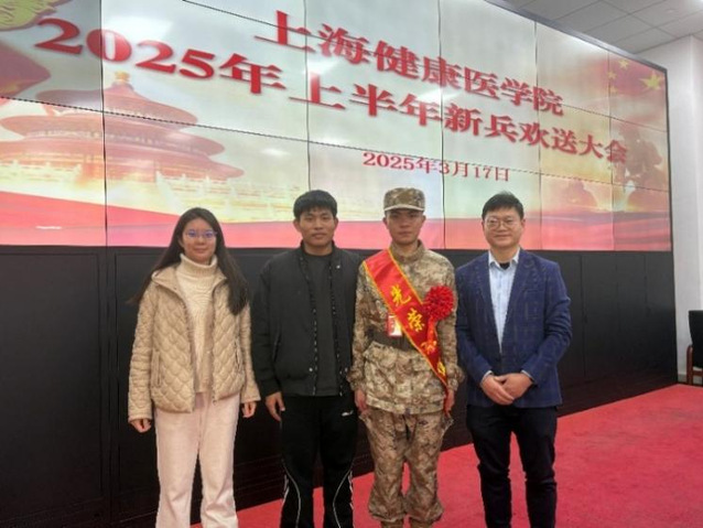 2025年上半年,11名上健医学子(10名男兵、1名女兵)参军入伍,其中,公司24级食品卫生与营养学专业的郑永业同学,以其坚定的信念与卓越的素质,光荣入伍,踏上军旅征程。