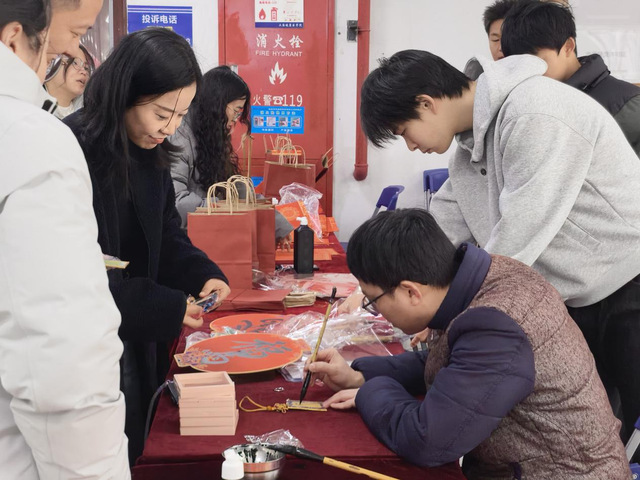 活动分为“现场签到—玩转福气签—领取或制作文创奖品”等趣味环节。活动现场气氛热烈,师生们有序签到后,纷纷来到“福气签”抽取处,竹制签筒里的签条承载着平安、喜乐、顺遂等美好寓意,师生可领取福气签对应的文创奖品——写有“平安”的精美挂件、红彤彤的“福”字、刚劲有力的对联,每一份都饱含着浓浓的节日祝福。