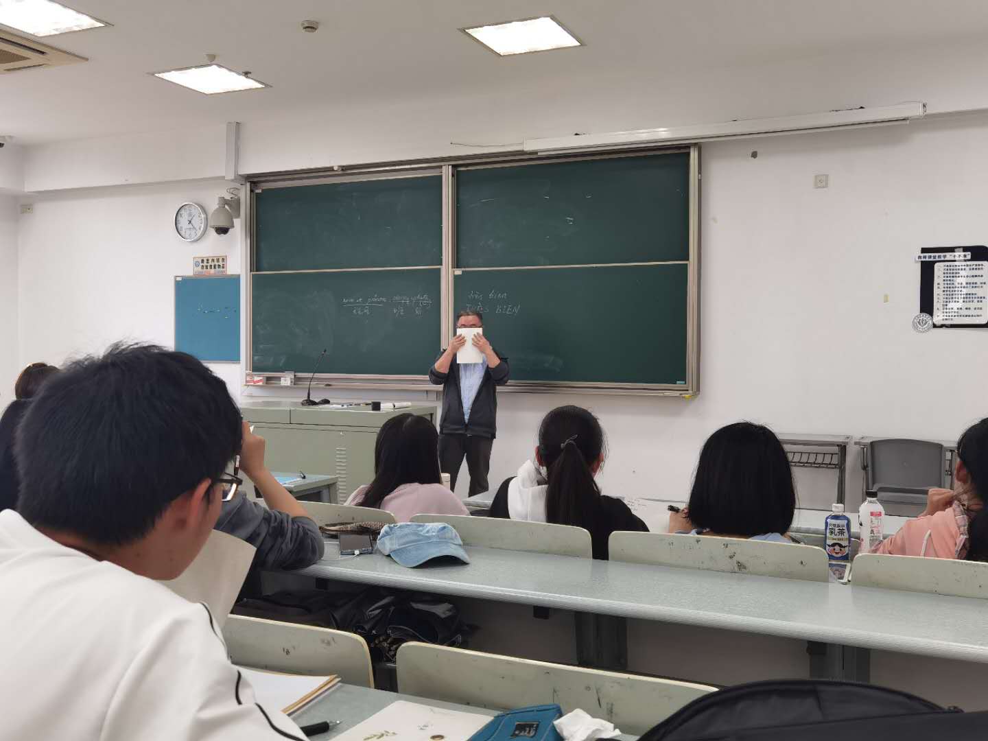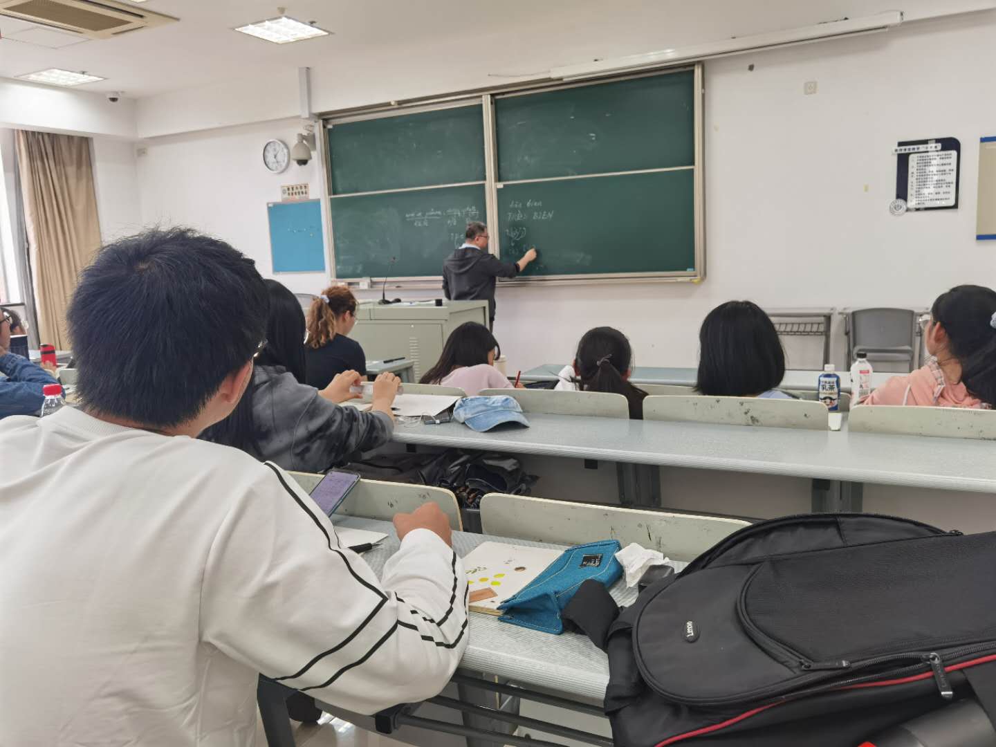虽然今天下了入秋以来第一场冷飕飕的雨,但怀揣去到欧洲学习梦想的孩子们学习法语的热情丝毫未收到影响。面对法语零基础的员工,丰富教学经验的李老师为使员工们快乐学习法语,生动讲解知识点。贴合实际的举例讲解,让员工们学习的法语立刻就可以应用出来,对新语言的接受程度大幅提高。李老师从最基础的字母表开始教,虽然员工们都知道英文字母的发音,法语字母写法虽接近,发音却大不同。为帮助员工区分英文字母和法语字母的发音,李老师逐一带读每个字母,并要求每个员工现场录制自己的发音及时发送,帮助每个员工纠正发音。为使员工扎实掌握每个字母的发音,李老师金点子频出,将打乱顺序的字母逐一编号,随机发问,员工们迅速准确的读出来。每个知识点都被李老师拆分成小点,揉碎了掰开了来讲解发音的技巧和要点,深入浅出,员工们都茅塞顿开。李老师说“学习法语,就像学习舞蹈一样,看起来容易,身体却诚实的说不容易”同学们都会意的笑了。课堂上员工们认真听李老师的讲解,大胆开口模仿学习,奋笔疾书记笔记,怕错过任何一个细节。