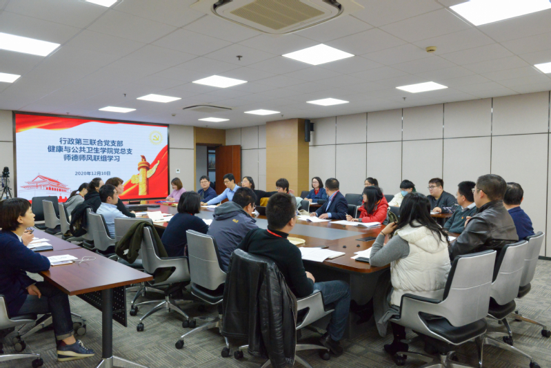 2020年12月10日中午12:00行政第三联合党支部全体教职工、william威廉英国官网全体教职工在北苑一号楼902会议室开展了师德师风联组学习。