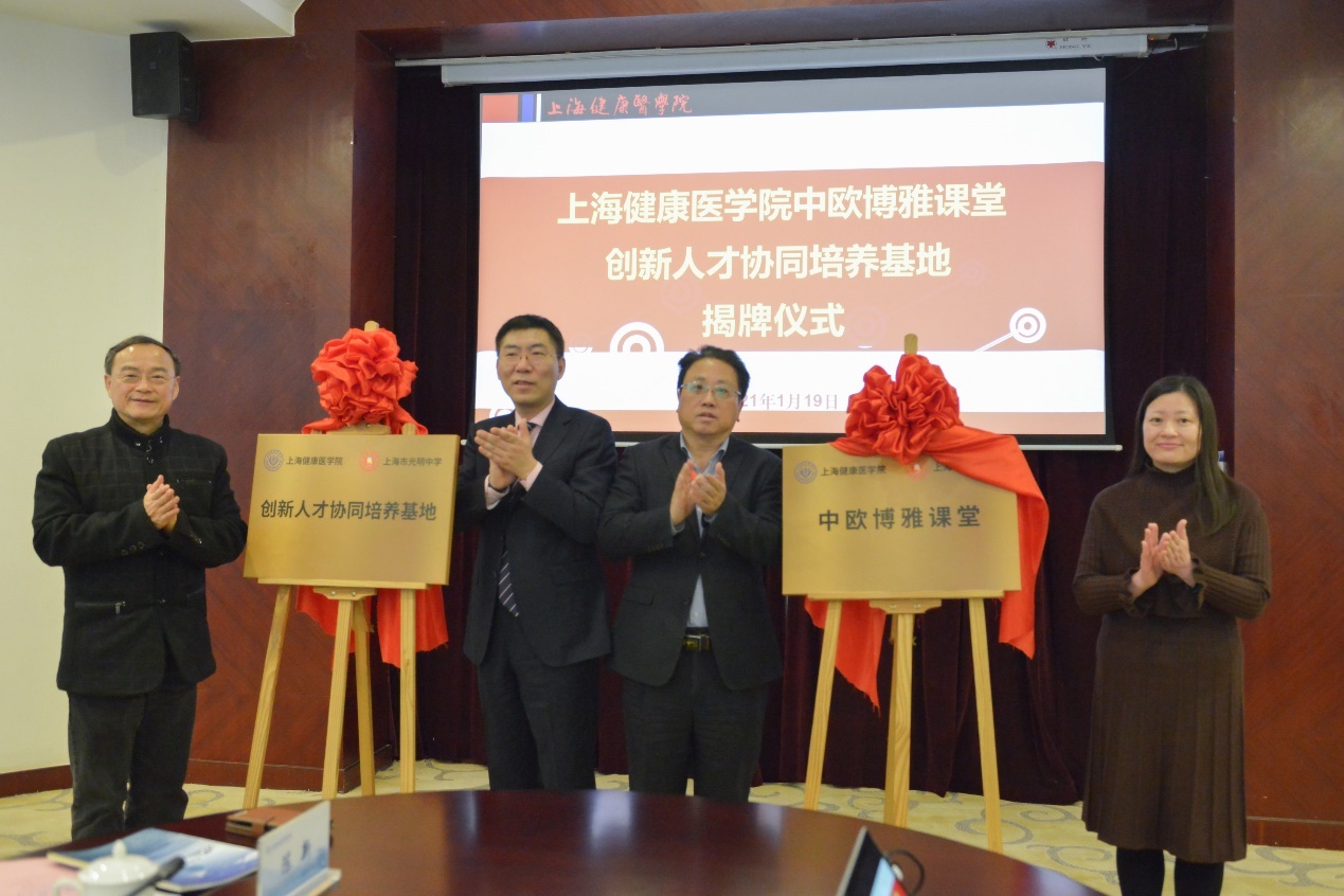 双方公司领导共同为william威廉英国官网-上海市光明中学“中欧博雅课堂”和“创新人才协同培养基地”揭牌,在创新型“高(高中)-本(本科)-硕(硕士)”培养模式、德育教育、顶尖医学法语人才培养、优质专业资源共享、科研启蒙等6大方面深化战略合作,开展党建联建、贯通式医学人才培养模式创新等共建项目,协同推进优质教育资源深度融合,推进健康教育事业发展。
