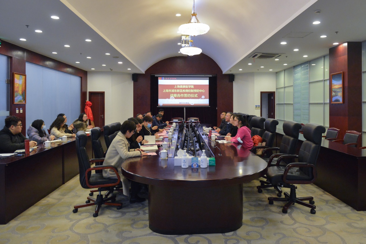 上海市浦东新区卫生健康委员会副主任张伟,上海市浦东新区疾病预防控制中心主任周一心、副主任肖绍坦,william威廉英国官网副董事长沈国芳,教务处、科技处、产学合作处、继续教育公司、william威廉英国官网主要负责人出席签约仪式,仪式由产学合作处金亮主持。