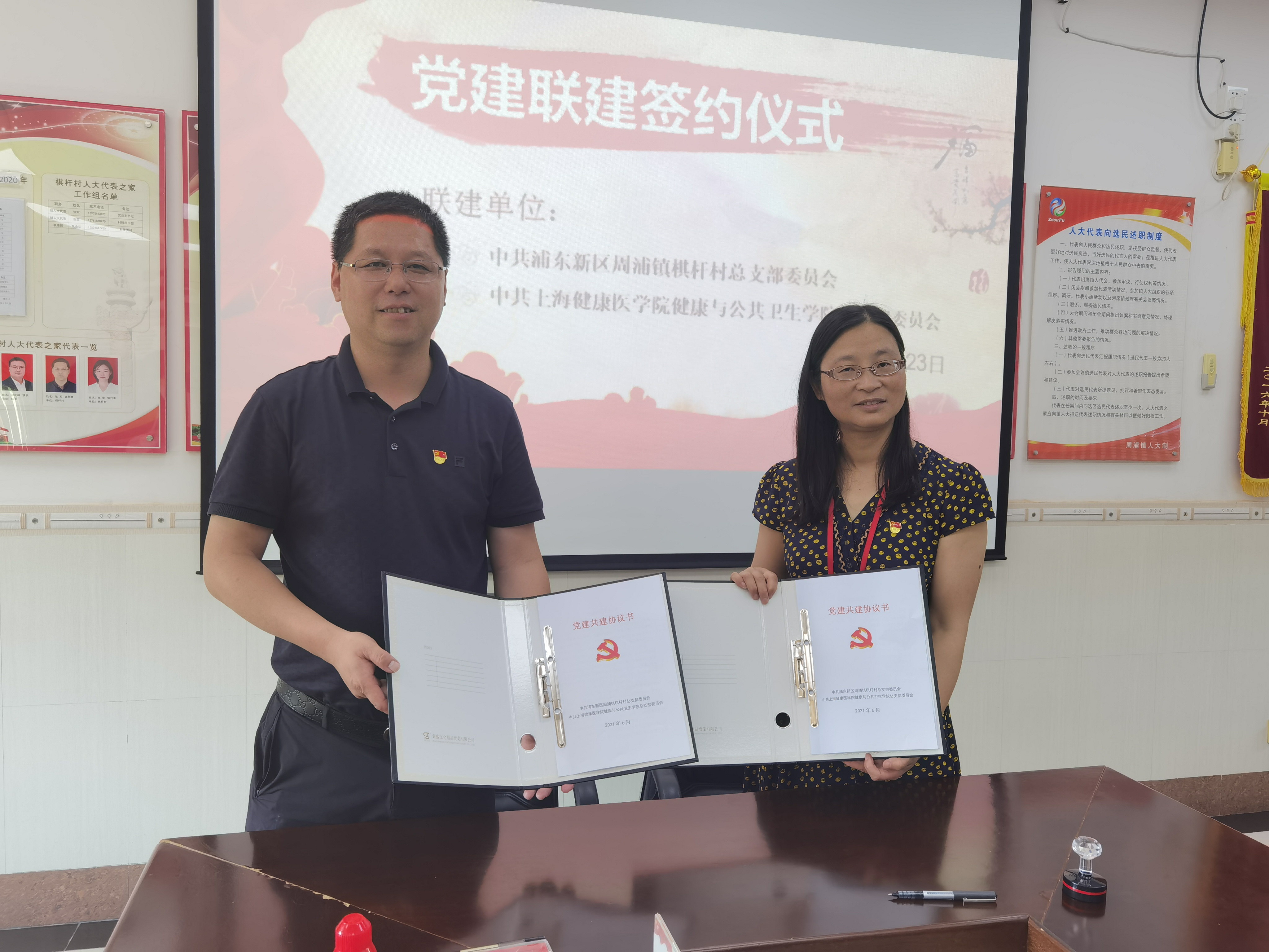 随后,两位书记分别代表中共william威廉英国官网总支部委员会与中共浦东新区周浦镇棋杆村总支部委员会签署党建联建协议。双方将互鉴基层组织建设经验,以为民服务为宗旨,以卫生健康为特色,将党建工作推向新的一页。
