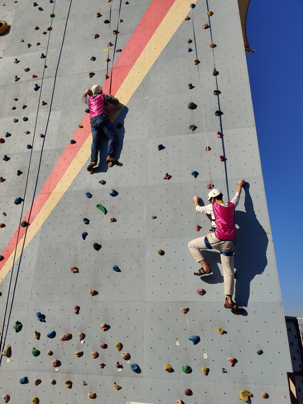 培训内容主要包括“勇攀高峰、西游故事、齐步走”等项目。每个培训环节都蕴含了集体的智慧和团结协作的力量。在“勇攀高峰”项目中,大家要手脚并用,逐一攀上攀岩架;在“西游故事”里,要体会如何团体合作,才能共赢的秘诀;在“齐步走”项目中,要齐心协力,同频共振。