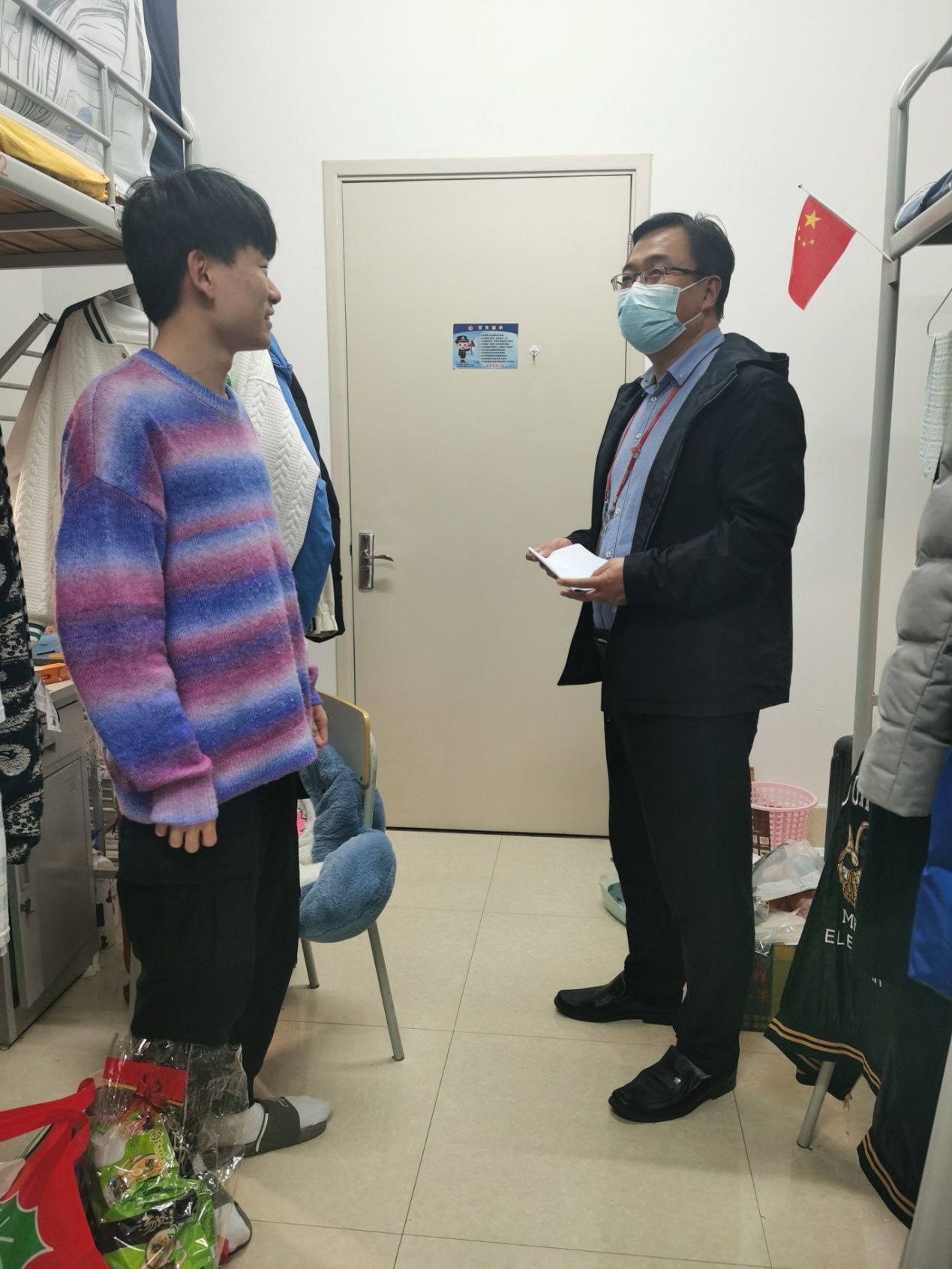 校园严格管理和准封闭管理期间,留校同学的学习、生活和心理是公司最为关心的一件大事。为做好留校同学工作,曲老师一周内两次走访公司所有的男生宿舍,了解每个同学学习生活情况,了解同学们的困难和需求,给予帮助,做好解答和指导,激励疫情防控信心。曲老师还加入公司员工宿舍管理小队,配合公司完成留校员工信息排查工作。同时作为住宿教师,时刻准备并参与应急突发状况处置和演练等。