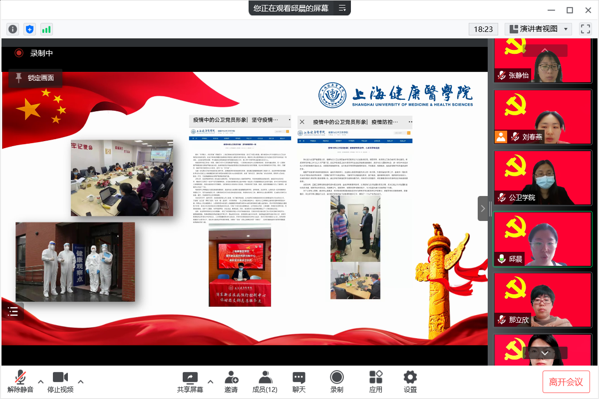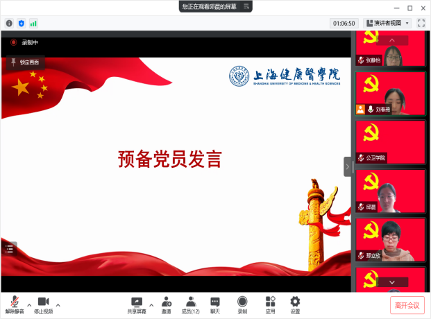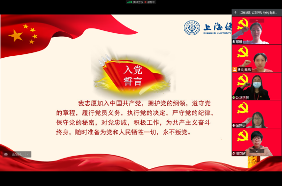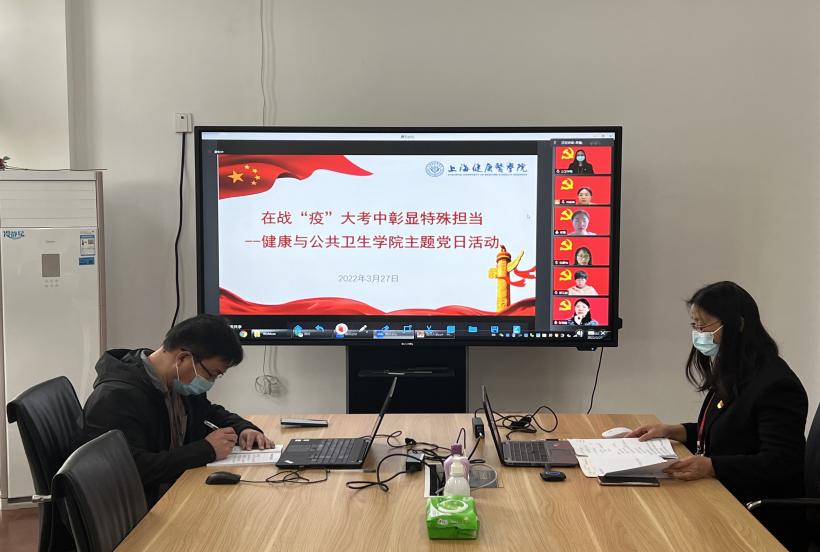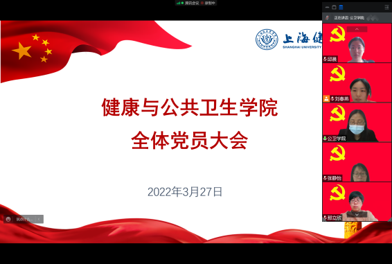 党员大会上,曲春波副教授和赵乐宏老师作为优秀党员代表发言。曲春波老师讲述了在公司里值守的日常。他表示,维护好公司和员工,就是维护社会大局的稳定。在公司期间辅助陈泓书记服务好员工和公司,贯彻政府对公司疫情防控的工作,点点滴滴都能够深刻体会到疫情当下老师们和同学们的辛苦。我们应当树立必胜的信念,维护好公司的平安和稳定,为打赢新冠疫情防控阻击战贡献力量。赵乐宏老师讲述了在浦东疾控中心的抗疫日常。防控压力陡增的情况下,同学们踊跃报名,主动请缨,3月9日一早就出征浦东疾控中心开展电话流调、密接及次密接者信息汇总和派单、隔离点跨区及跨省协查等工作。截止到3月25日,29人的志愿者团队,总志愿时长超4794小时,完成电话流调共计约4870人次,接转外区密接与次密接共计约9350次,二次密接审核共计约4050次,密接与次密接派单共计约15700次。在这个特殊时期,同学们比以往任何时候,更真切地体会到“健康与公共卫生”这份事业,承载着多么重的责任。他表示将继续带领公卫公司的同学们坚守在浦东疾控中心,扛起一份上健医青年的特殊责任、和特殊担当。