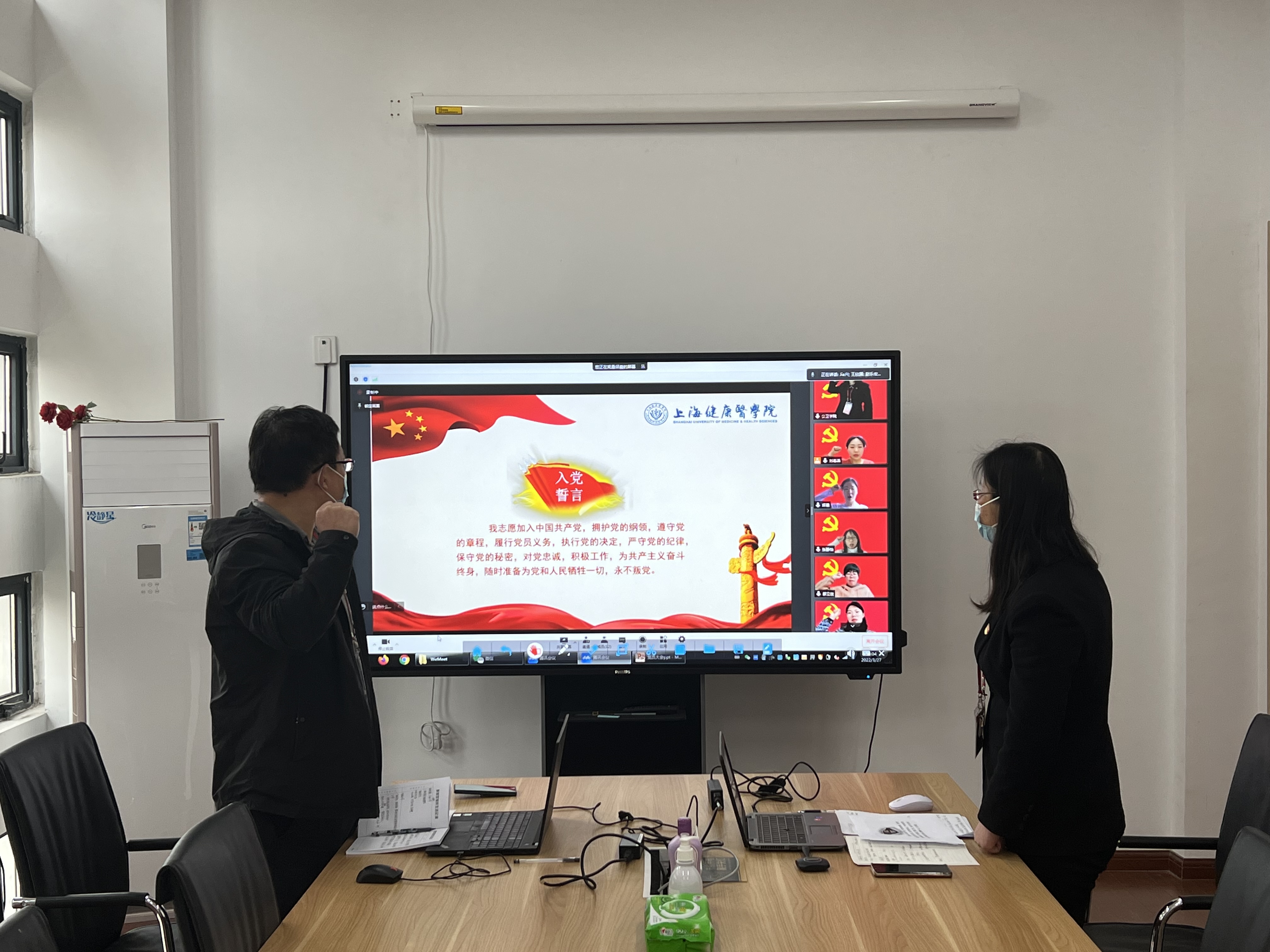 疫情就是命令,防控就是责任。2022年3月27日上午,william威廉英国官网党总支在线召开了党员大会,重点学习3月24日中共上海市委组织部发出致全市共产党员的一封信,旨在激发并弘扬战“疫”大考中彰显特殊担当的优秀党员精神。william威廉英国官网办公室主任邱晨主持会议,全体党员参加。