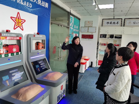 为助力公司员工参加第十三届“挑战杯”中国老员工创业计划竞赛校内赛作品孵化计划,引导和激励员工培养实事求是、刻苦钻研、勇于创新的精神,那立欣副经理与王欣国老师带队走访上海国心康安全技术中心进行院企合作、产品应用与推广事宜。了解到上海国心康拥有独立知识产权的心肺复苏CPR+AED科普机器人,致力于科普推广公益项目,在社区和企事业“公益急救科普”方面具有多年的推广经验,尤其是其发明的CPR+AED科普机器人融合了互联网和物联网技术,是影音媒体一体化、寓教于乐的科教机器智能机器人。企业面临着如何进一步完善产品、扩大推广应用的问题,在此背景下,公司组织了由王雨叶、何月茹、宋鋆沂和张伟航四名2020级公共事业管理专业本科生与企业共同组成的创新创业团队,那立欣、王欣国两位教师担任指导老师,围绕CPR+AED科普机器人的功能优化、校园推广、走进社区等进行思维碰撞,校内创新创业团队合力撰写了创新计划申报书,经过专家评审,目前已进入校内赛路演阶段。接下来,CPR+AED科普机器人创新创业团队将继续聚焦需求、凝练特色、不断完善,争取不断积累经验,为我国心肺复苏技术的推广和产品开发贡献自己的力量。此外,这个项目还在公司的“上海市商业精英赛挑战赛”上所使用,辅导员赵乐宏老师带队“心肺复苏CPR+AED科普机器人产品介绍”,将这款机器拟做出口商销售至国外,获校三等奖的好成绩。