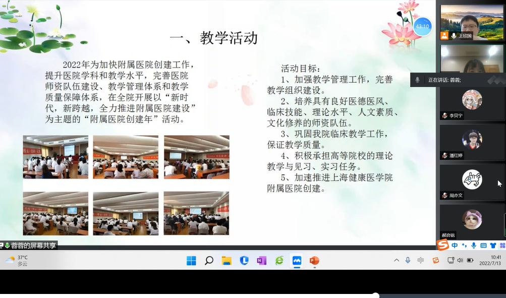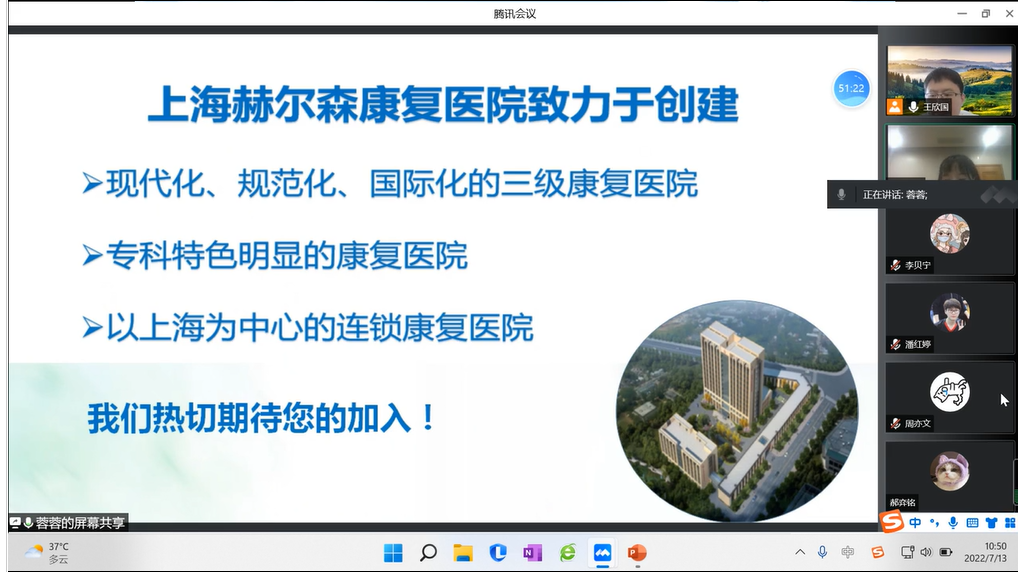 上海赫尔森康复医院系列讲座,让师生们对现代医院的管理有了初步的一个认识。为进一步拓宽对管理工作的认识,2022年7月13日上午10点,赫尔森康复医院医务科黄蓉科长来院举行讲座,公共事业管理教研室全体教师参与此次讲座 。2020级、2021级公共事业管理专业本科生一同出席。